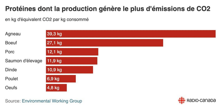 Selon une étude américaine, ce qui atterrit dans les assiettes contribue jusqu’à 20 % de l’empreinte totale d’une personne